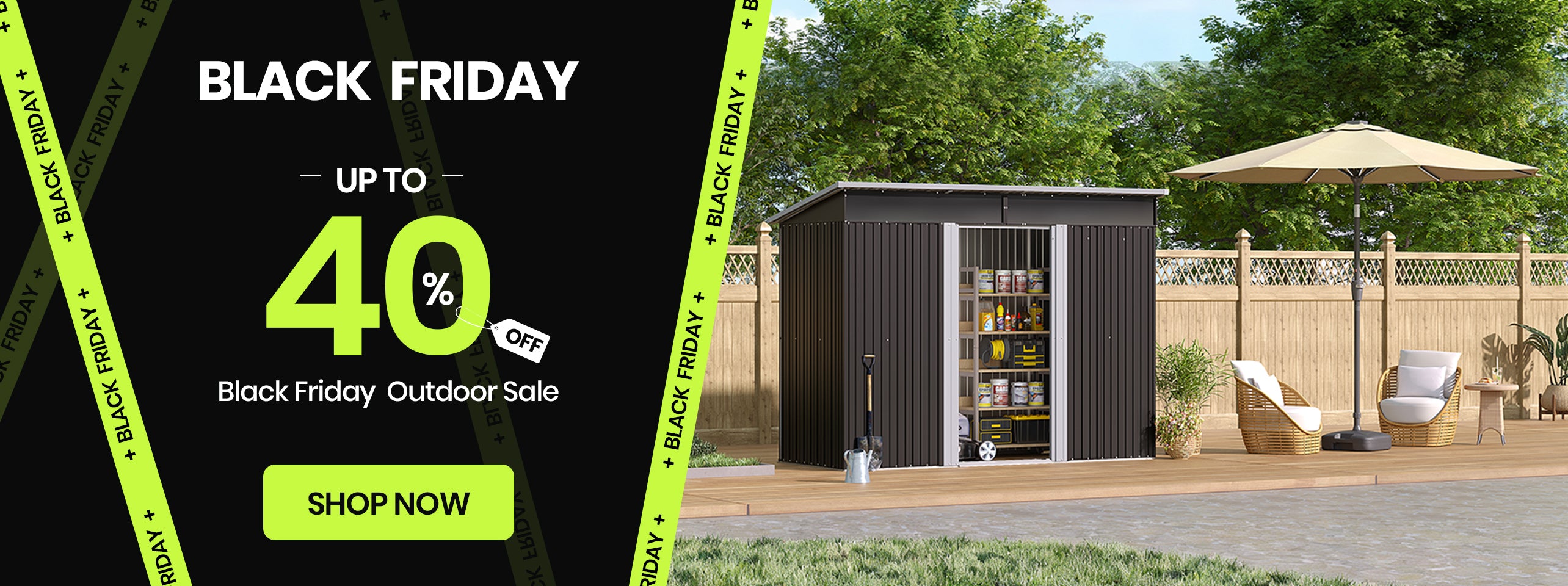 7x3ft Black Garden Metal Double Door Garbage Shed with Lock