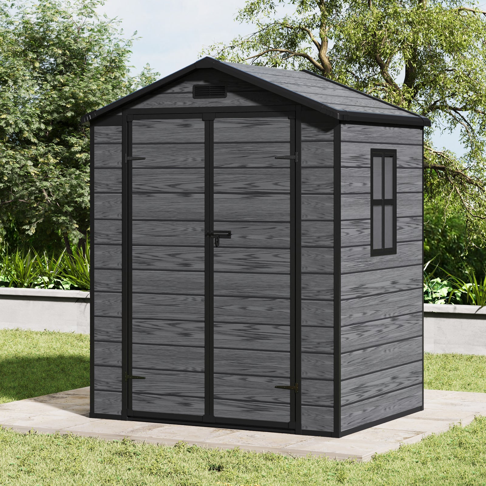 6x4ft Plastic Garden Shed Waterproof Outdoor Storage with Double Doors