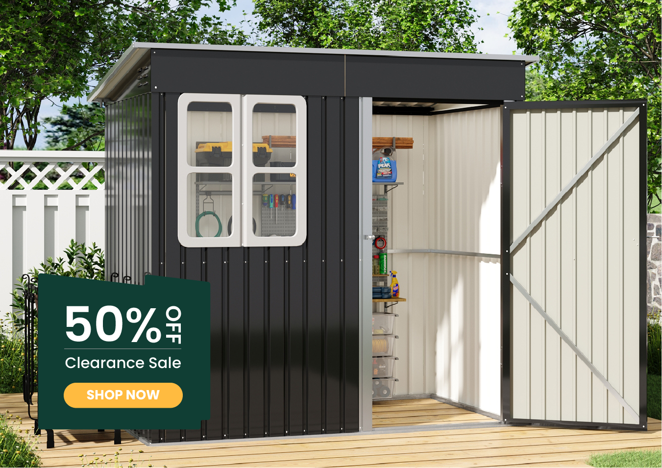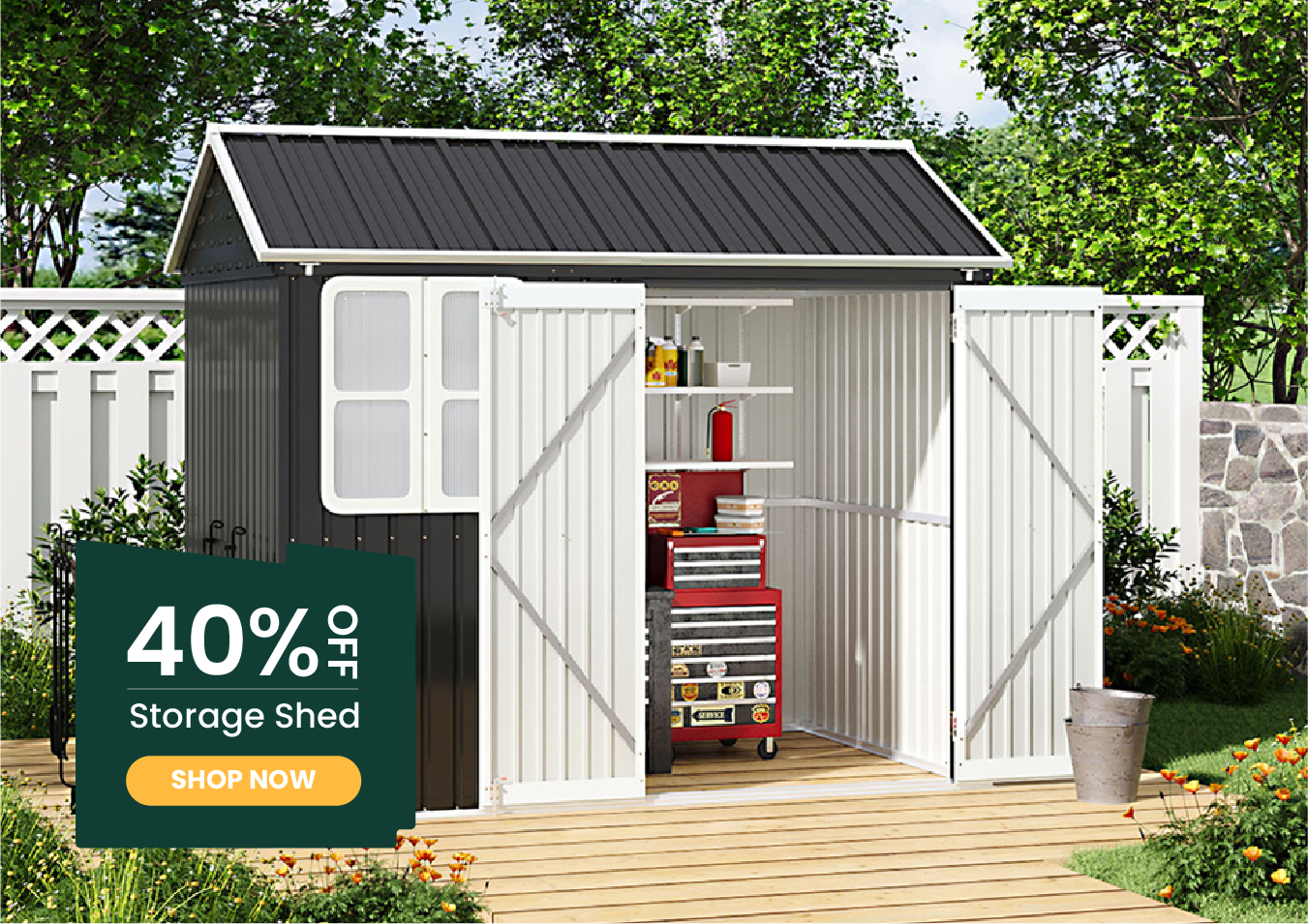 7x3ft Black Garden Metal Double Door Storage Shed with Lock