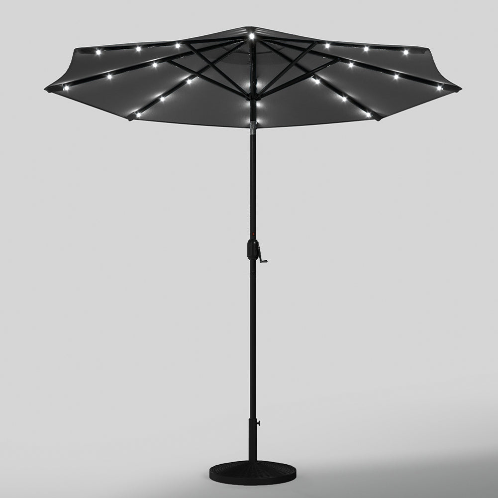 This umbrella features a tilt function for optimal shade adjustment and a round solar panel at the top, powering the rib lights for 6-8 hours without electricity. Its sleek, durable design fits most umbrella stands and dining sets, making it a versatile addition to any patio. The octagonal shape with curved edges adds a stylish touch, while its timeless craftsmanship ensures long-lasting use. Easy to assemble and built to withstand regular use, this umbrella combines functionality and elegance effortlessly.