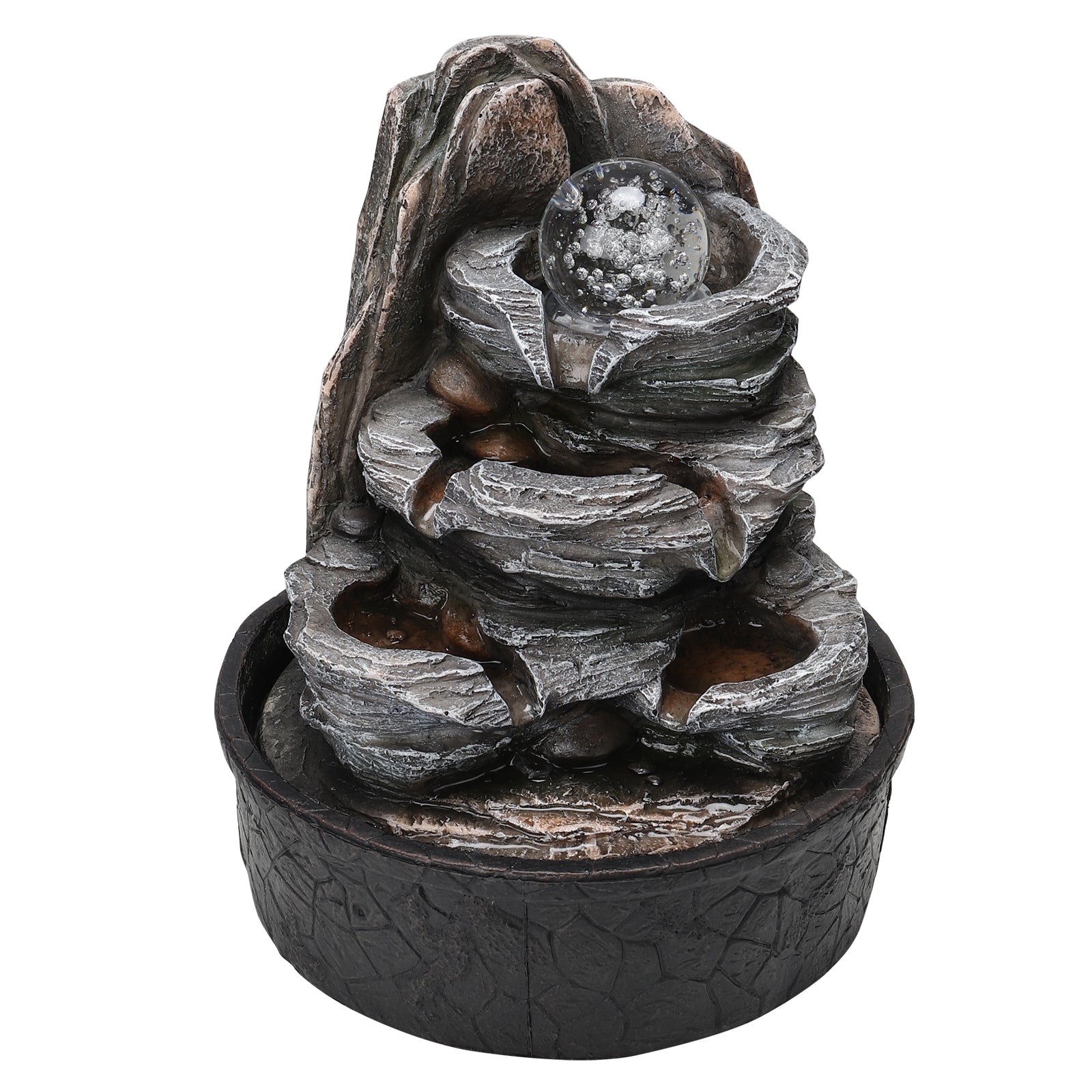Bring the charm of nature indoors with this tabletop fountain. Cascading water flows over tiered rocks, rotating a glowing crystal ball for a soothing ambiance.